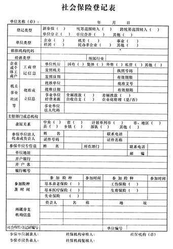 1、社会保险登记表及在职职工增减异动明细表(一式两份)并在所管辖社会保险经办机构领取